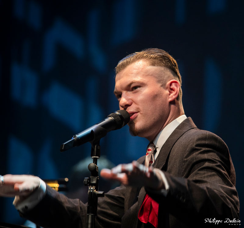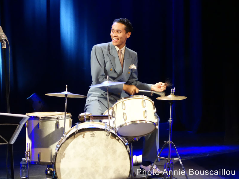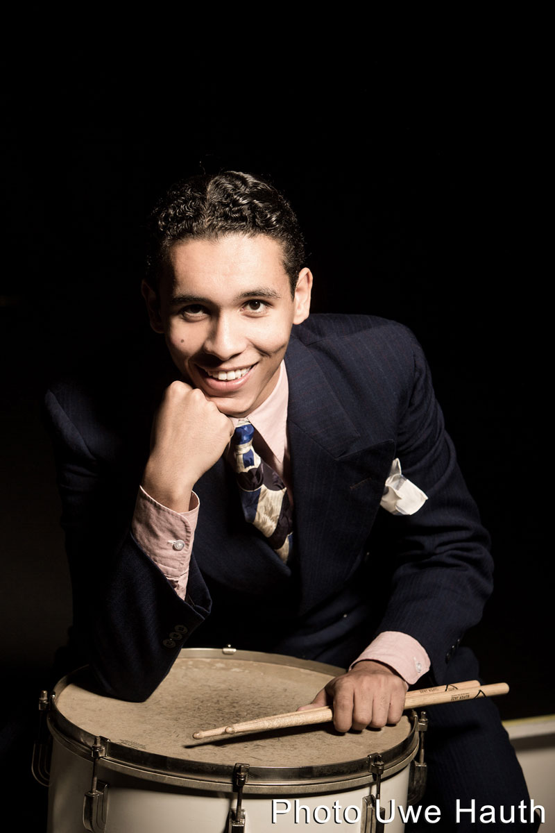 Great drummer (Gene Krupa / Jo Jones style), singer and showman (Cab Calloway style), tap dancer (Nicholas Brothers style), with an overflowing energy on stage and an absolute class, the young (23 years old) Berliner David Hermlin brings us back into the 30's : Wether in trio, quintet or big band, the concert full of swing and surprises keeps us on our toes from start to finish.