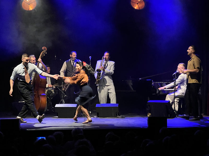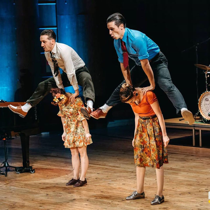 Swing Time ! invites us to a travel back in time, in the 40’s and 50’s when bodies were going crazy to the sound of swing and rock’n roll, when dance and good mood were guiding a youth in search of a freedom. A swing and rock show like no other, where excellent musicians and extraodinary dancers will heat up bodies and hearts.